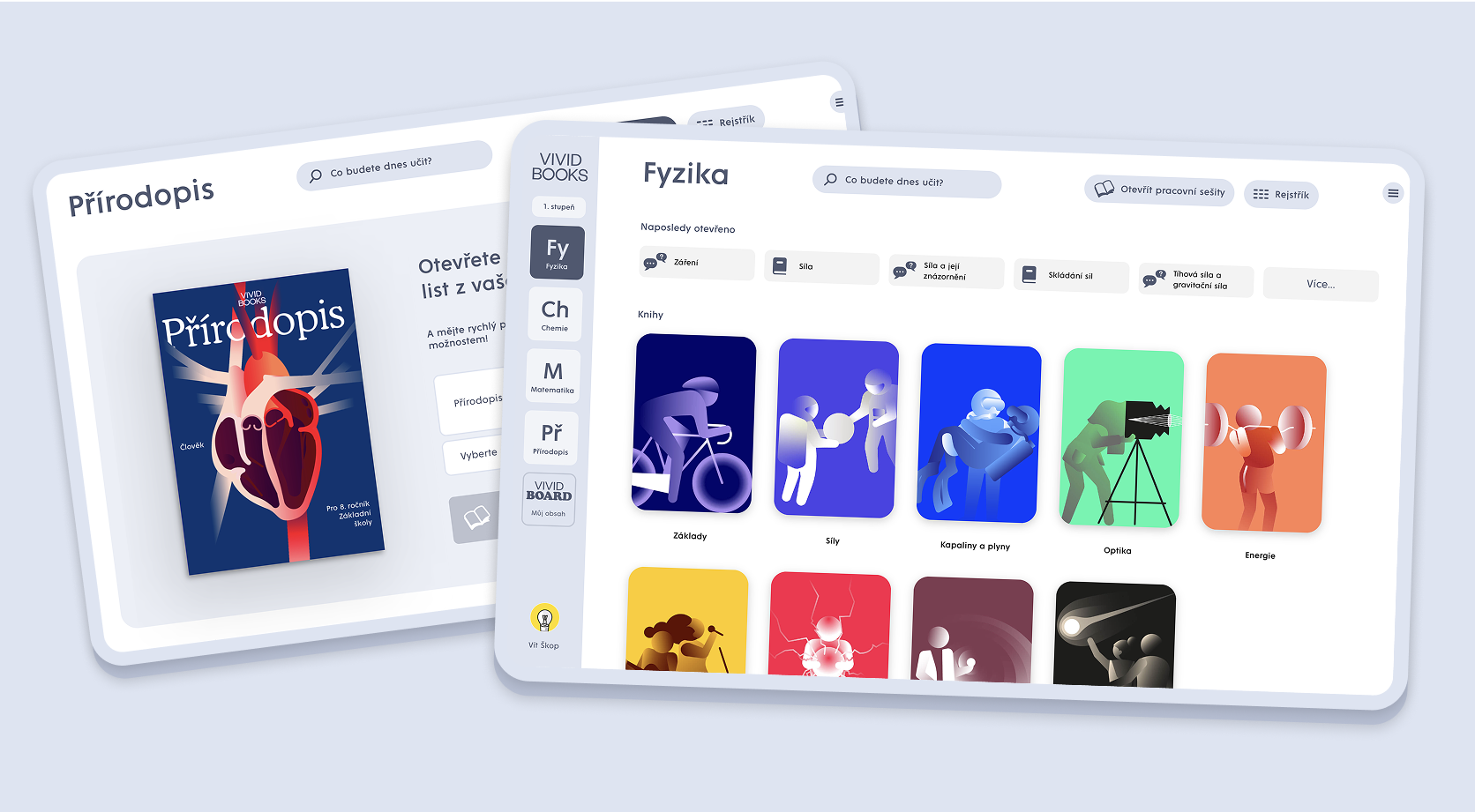 Rozšiřte svou sadu o digitální učebnice matematiky, fyziky, přírodopisu nebo chemie, nebo zakupte Vividboard – náš interaktivní nástroj pro celou školu.